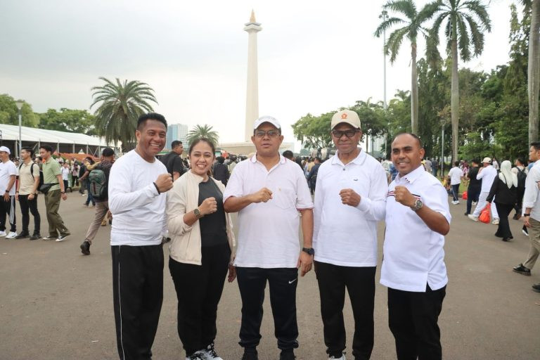 Para KDH dan WKDH terpilih mengenakan kaos putih dipadu celana training hitam.