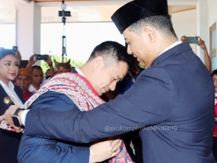 Kika : Rangkulan mesra Wali Kota, CHRISTIAN Widodo oleh Ketua DPRD Kota Kupang, RICHARD Odja. Rabu (5/3). Doc.CNC/Prokopim setda kotakpg