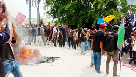 Padahal sebelum melakukan aksi bakar-bakaran, para pendemo yang tergabung dalam Aliansi Cipayung Plus, BEM, dan OKP Nusa Tenggara Timur, mereka berorasi diluar area gedung. Tepatnya di depan pintu gerbang menuju gedung dewan Jalan El Tari Kota Kupang.