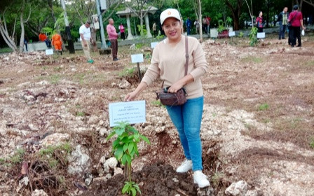 MARIA Rosalinda Uta Teku, SE, MM -Anggota DPRD Kota Kupang usai tanam anakan pohon Alpukat. Doc. marthen radja/CNC