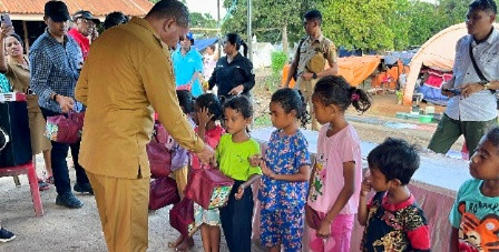 Dalam kunjungan tersebut, Wagub Johni juga memberikan bantuan secara simbolis kepada perwakilan masyarakat. Adapun bantuan yang dibawa serta disalurkan terdiri dari Makanan siap saji: 3.460 paket; Makanan anak 160 paket; Family Kit 70 paket; Kids ware 64 paket; Kasur lipat 200 lembar; Tenda gulung 50 lembar; Tenda serba guna 7 unit; dan Selimut 100 lembar. Dengan jumlah nilai atau total bantuan sebesar Rp. 635.910.300,-