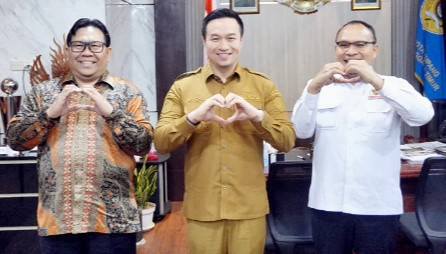 Tampak Wali Kota Kupang, dr. CHRISTIAN Widodo (tengah) pose bersama Robert Na Endi Jaweng dan Dadan S. Suparmawijaya. Doc. CNC/Ist.