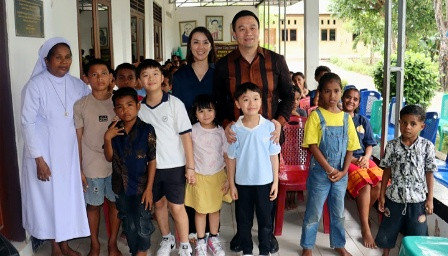 Wali Kota Kupang, dr. Christian Widodo dan keluarga foto bersama di Panti Asuhan St. Luis de Monfort Kupang, Minggu 16 November 2025. Doc. CNC/Prokopim setda kotakpg