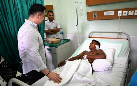 Tampak dr. Christian Widodo menjenguk Stefanus Kase sedang dirawat di RS. Boromeus Kupang. Doc. CNC/Prokopim Kota Kupang