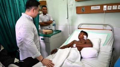 Tampak dr. Christian Widodo menjenguk Stefanus Kase sedang dirawat di RS. Boromeus Kupang. Doc. CNC/Prokopim…