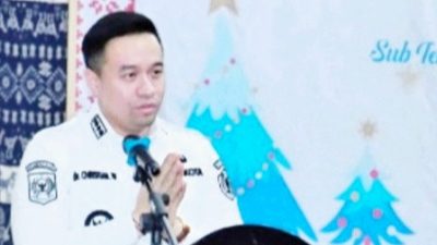 Wali Kota Kupang dr. Christian Widodo memberikan sambutan pada acara pengukuhan Ketua Umum KKBM di…