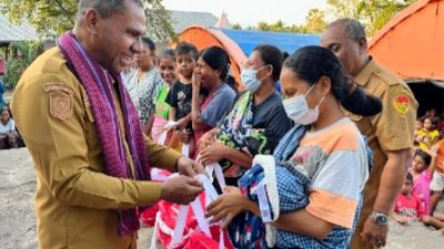 Suasana haru menghampiri Wakil Gubernur NTT, Johny Asadoma saat membagi bantuan korban Erupsi Gunung Lewotobi…