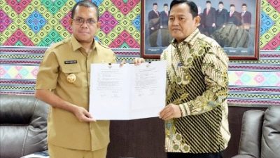 Kika : Gubernur Melky Laka Lena dan Triyantoro memperlihatkan dokumen LKPD TA 2024 di gedung…